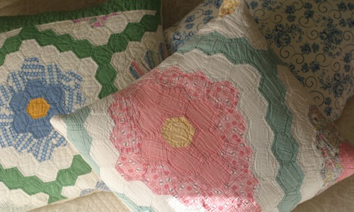アンティークキルトをリメイクしました 年代を超えて優しい雰囲気のクッションです いくつあっても♪