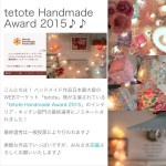 tetote Handmade Award 2015 結果♪♪こんにちは! 先日お伝えしたハンドメイド作品日本最大級のWEBマーケット「tetote」様が主催されている「tetote Handmade Award 2015」でなんと!「インテリア・キッチン部門 3位!」さらに!「株…