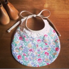 ベビースタイ ベースはリバティに首元にはレース❤︎紐の先端にはシェルボタンが付いています。 By Chou Chou | 14.1.21 | Hand made | No Comments | Read more