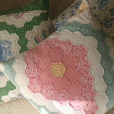 アンティークキルトをリメイクしました 年代を超えて優しい雰囲気のクッションです いくつあっても♪