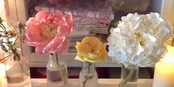 部屋に花があると、癒されます♡ 今回は、可愛らしい色合い♪ 真っ白い紫陽花に、淡いシャクナゲ、幸せのイエロー薔薇♪